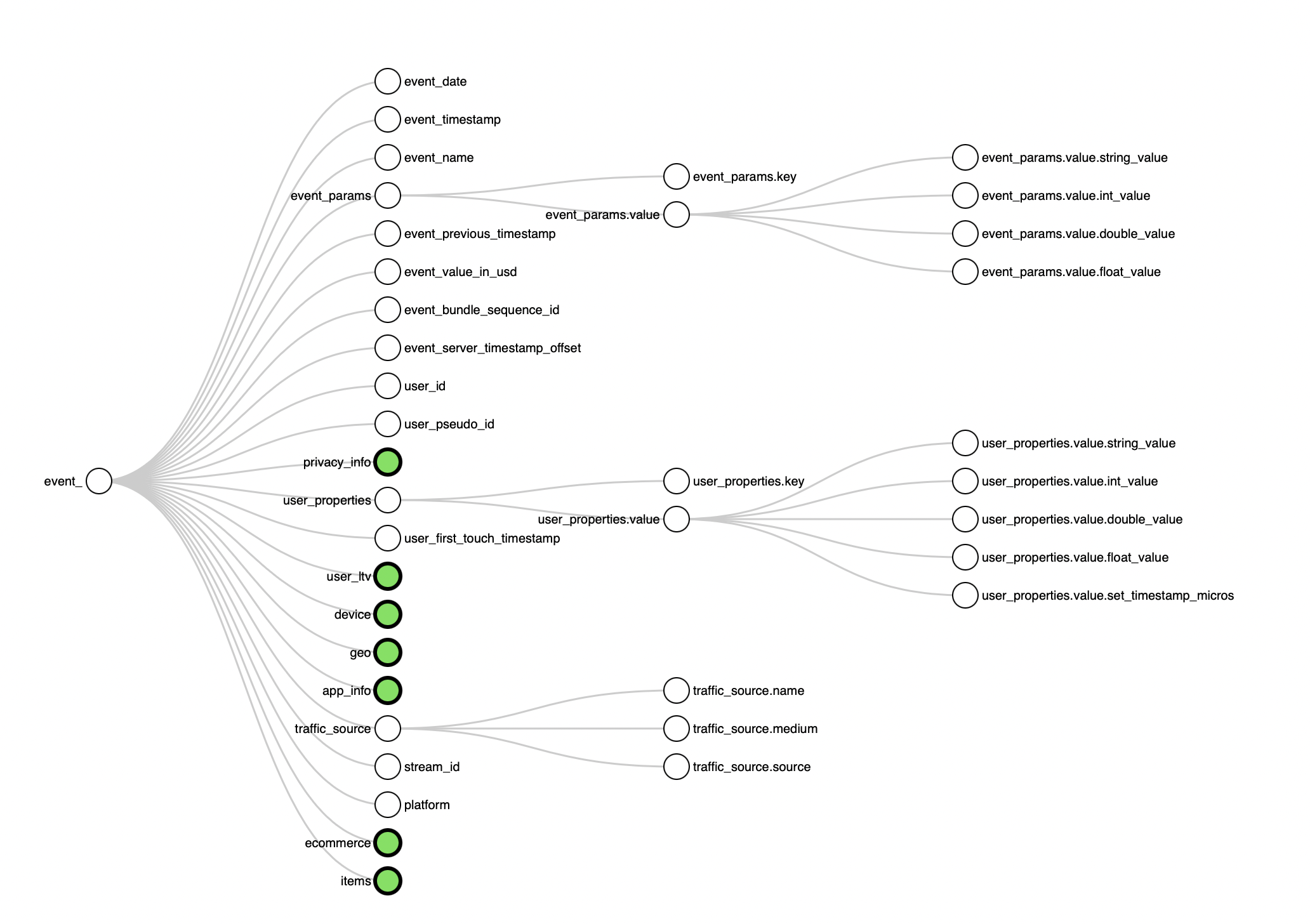 다만 위에서 말하는 event_name이 뭐가 되어야 하는지, value가 어떤 값으로 오는지는 전부 쿼리를 쓰는 내가 먼저 알아두어야 한다. 만약 내가 찾는 값이 int가 아니라 string으로 지정되어서 수집이 설계되어 있다면 쿼리는 분명히 달라져야 할 것이다. 이게 아니더라도 이벤트명이 헷갈리는게 굉장히 많고, 컬럼명 또한 user_id 와 user_pseudo_id 의 차이를 분명하게 알고 집계를 시작해야 할 것이다(이건 이후 글에서 작성). 따라서 스키마를 보면서 특정 유저의 데이터를 계속 보고, value들을 음미하면서 마치 광산에 들어가서 보석캐는 사람처럼 호시탐탐 노려야(?) 하지 않을까 싶다.